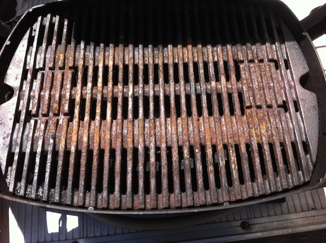 Banjo, by chance do you use a cast iron flat plate for eggs etc on the Weber? Do you leave it on the grill when finished? Just wondering if this may cause your rusting.