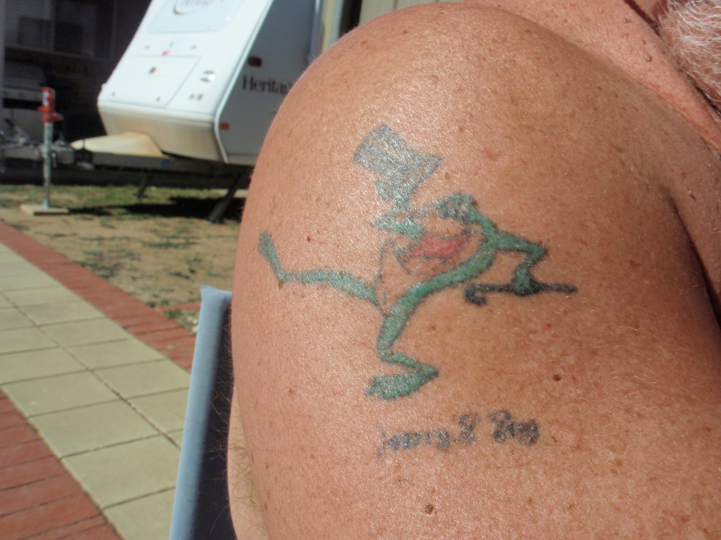 Hi June.....'any which way but lose'.....my arm tattoo sums up my current attitude to life ......I've had it since I fell asleep in the Hells Angels Tattoo Parlour from too much Bundy to numb the pain...it was supposed to be a coiled death adder....and when I awoke..I had Michigan J Frog...<they actually put Larry F Frog>...alias the Singing Frog....<You're toooo young to remember him?>....I didn't complain..I just took my frog and my arm and I left......lmao...Hoo Roo