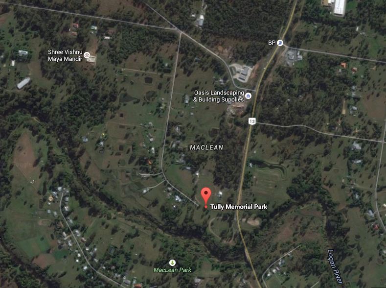 shows that Tully Memorial Park is at the end of Beryl Pde, after Greenbank Rd, as you say. But the Street View views at that end point of Beryl Pde show the park is fenced all around