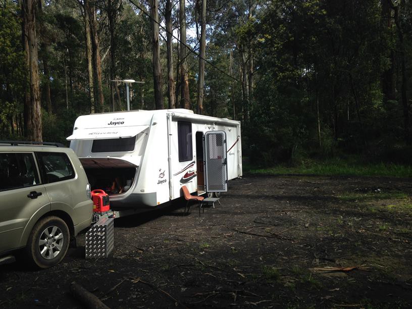 After a lunch stop in Kinglake our next camp was to be Toolangi Camping/Recreation reserve, with a babbling brook, the smell of wet trees after a little drizzle it was serene?.