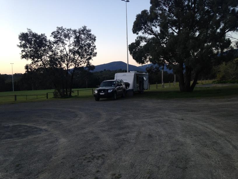 Next was to find a dump point AND they are few and far between down that way!!! Decided to travel 30 km up to Yea. I was going to fill up with water as well BUT non potable water!! We stopped at a servo to get some fuel and was hoping to get water as well, again non potable river water. So, I just bought a small amount of diesel. Now that I think of it that would have been ok as we had 15 litres of our own home tank water for drinking and cooking. Anyway, further down the track I found a servo slightly off the beaten track and they allowed me to fill our water tanks so I topped the fuel right up. We were heading to Wickams Road Oval, and finally pulled in after having to find a place to do a U turn as we missed the entrance!! What a great spot with toilets and a large level area available. This is the hub for the local footy, cricket, tennis and exercise clubs, as well as a few guys with their remote controlled cars racing around on the blue metal parking area.