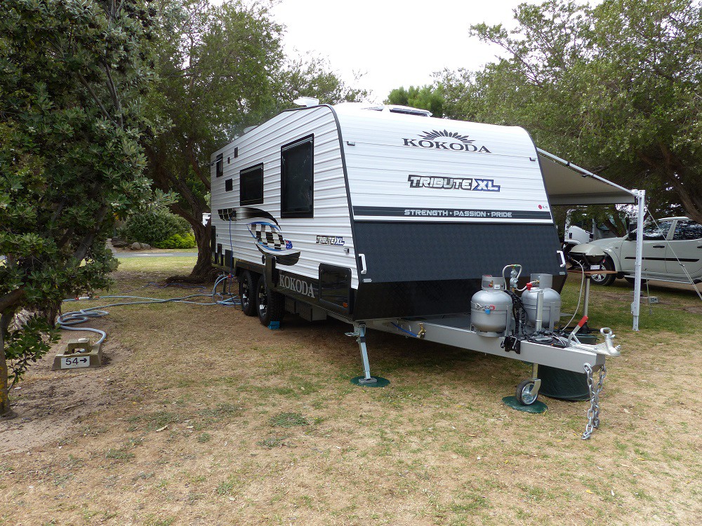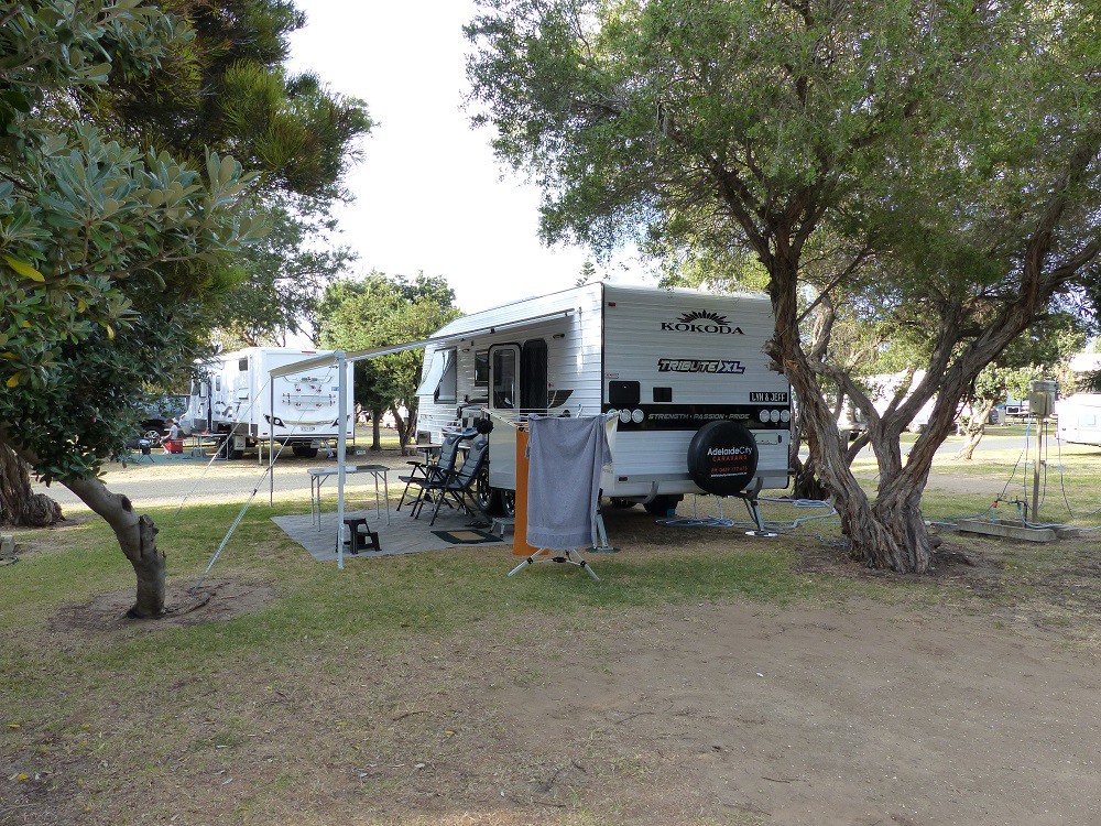 Arriving at Pt Elliot C/P gave us a bit of a fright. I didn't think I'd asked for the narrowest entry to the smallest site there but we had it. . Two goes and no arguements had the van parked, Boy I'm good (or was it the expert direction the Boss was giving me. ). Anyway a longer rig did seem easier to reverse.