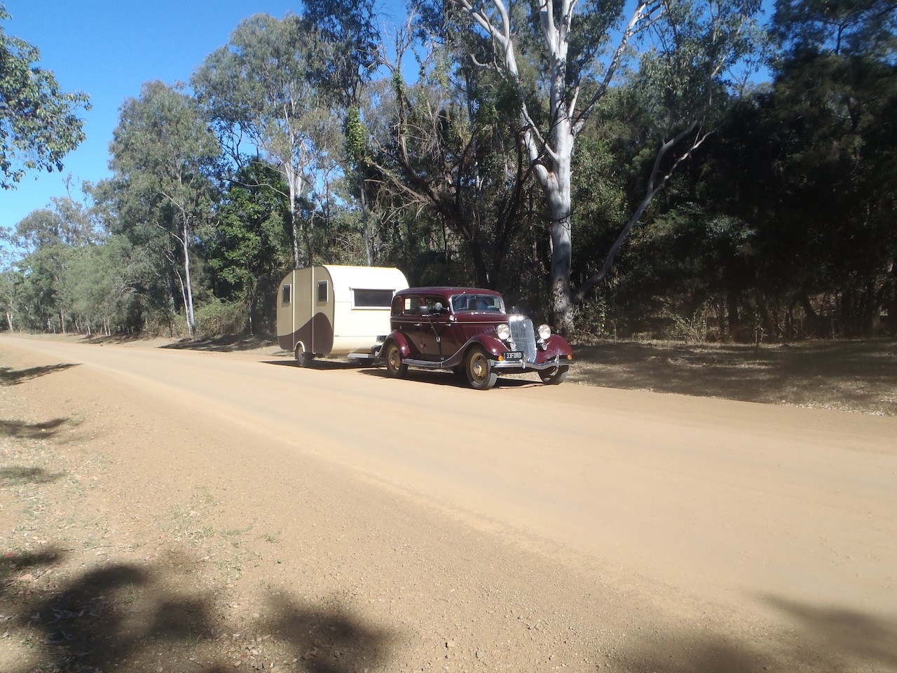 Yes we like our setup, I made the caravan specifically to be on the 33 ford,It has electric brakes and all the stuff so the old ford tows it easy and safe.only weighs 760kgs with out clothes and food.