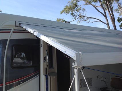 Hi Dave, So sorry to read of your awning doing a back flip. My Auto-trail also had a sissor type awning made by Thule Omnistor. During the first two trips from new it frightened me every time the wind came up. I had read stories of motorhomes in the UK having similar problems to yours. The solution for us was to fit an anti flap kit & a centre curved rafter. I purchased them from Aussie Traveller & had them fitted at their Brisbane warehouse on my way through. Additionally I use tie ropes. Those additions plus a side & end wall has worked a treat for us. I am now able to sleep at night without worrying about the awning failing. Alan's comments above are worth noting. Thus I would suggest you try to find an awning that can replace your failed unit and then fit the additions I have mentioned. The Knaus MH range is a good looking set of vehicles and you do not want to spoil it with an ugly awning. I have added a couple of images to show how ours looks.