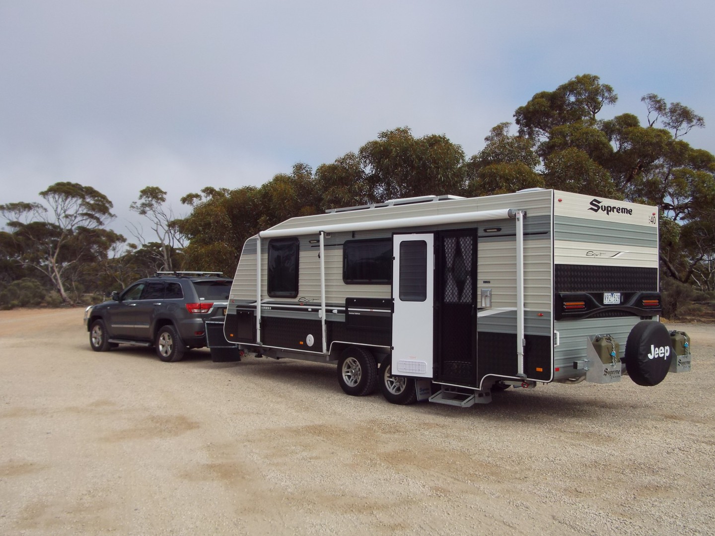 We tow our 2014 Supreme Spirit Series II with our Jeep Grand Cherokee Limited and it is a great combination. We have 420 watts of solar on the roof and a 120 watt portable panel if we're in the shade. The van has 240 Ah of AGM batteries. We used to carry a 2.0Kw generator too, but since I upgraded the solar we are generally back to full charge before lunch each day, so the generator has been retired. Water capacity of the van is 190 litres of potable water and 95 litres of grey water. It's a great set up for free camping. The van weighs about 2800 in ready to roll condition, and the Jeep handles it easily. On our trip north/west last year we averaged about 14.8 litres/100km for the 15,000 km we travelled, driving at about 96km/hr where the Jeep seems to have a real sweet spot.