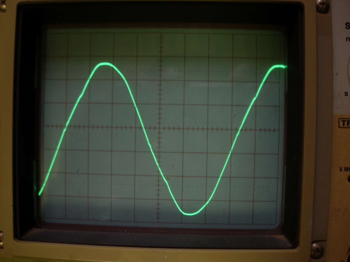 This is the Wave forms fed to the Engel compressor, about 20V & 50 Hz. The square wave is from the 12V drive, the sine wave is from the mains.