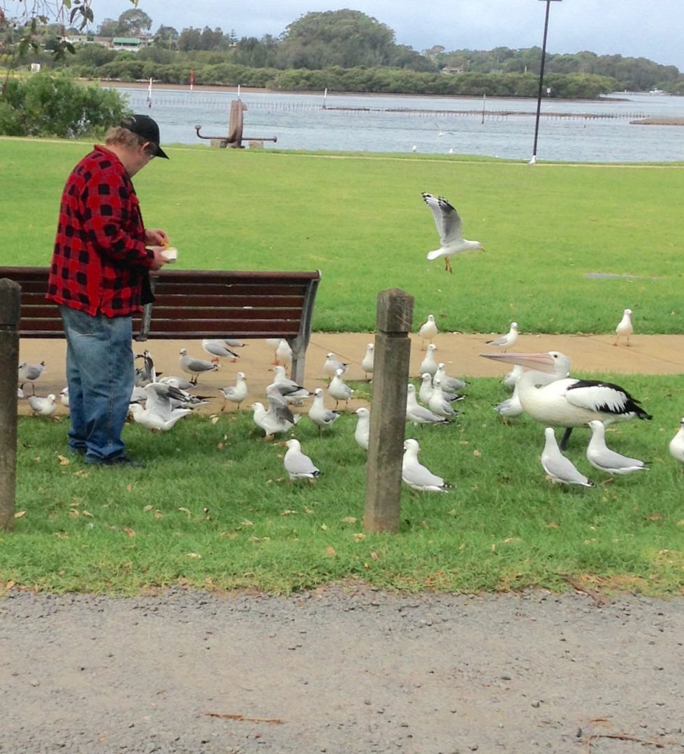 and fed the seagulls by hand ,a couple them sat on a chair took chips from my fingers and fed dave the pelican by hand too!