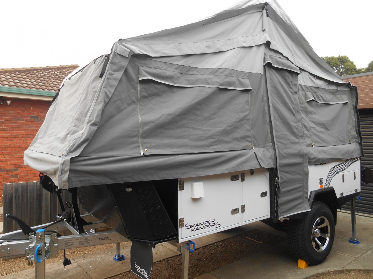 Here is our new Skamper Kampers "Dingo" which we took delivery of last week. Setting up the main tent, as in the photo, was a snap. We did take our time to setup the annex but this was done without any great difficulty or profanities .