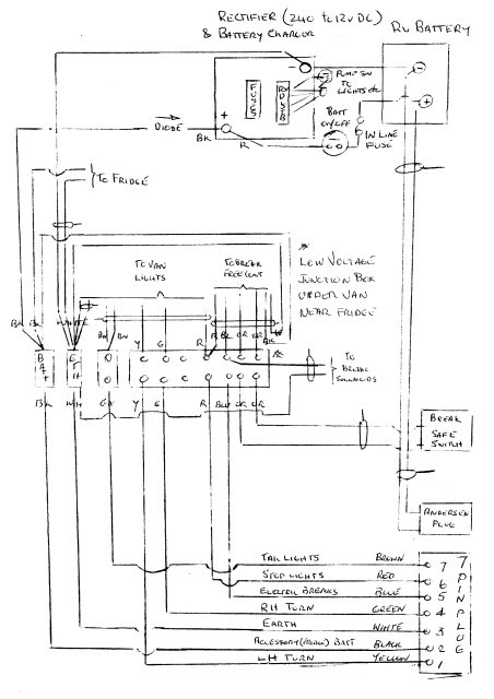 Back to the original post. You can see from my diagram that the Andersen plug goes straight to the in house battery that has a feed to the fridge (12v switch). The 7 pin plug term2 (Aux batt) also goes to the fridge.