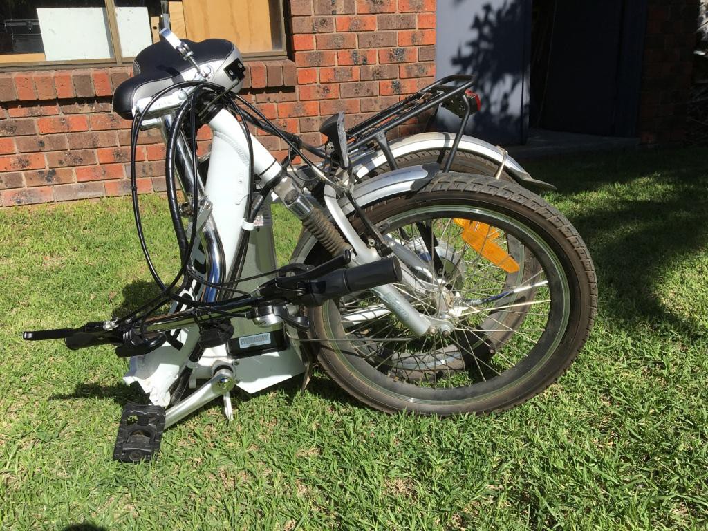 20 inch folding step thru electric bikes (2 available, price listed is per bike) 12 months old and in excellent condition. Lithium ion battery - 36V 10 amp hour, battery charger. Includes carrier rack, stand, trip computer, front and rear brakes, 6 speed Shimano gears, headlight, tail light.