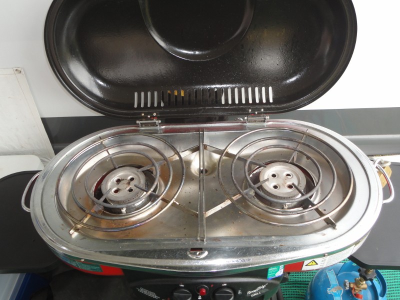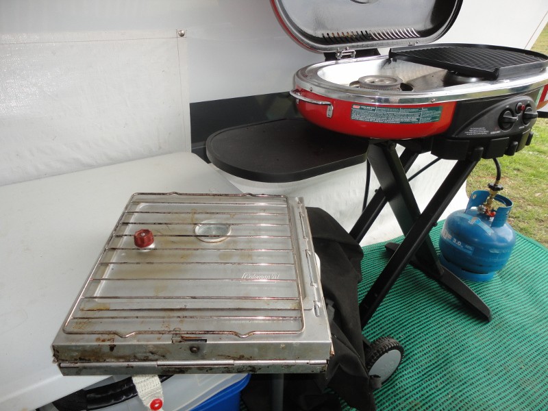 We call our Coleman Roadtrip Stove/BBQ complete with collapsible Coleman Oven ''the Q killer''.