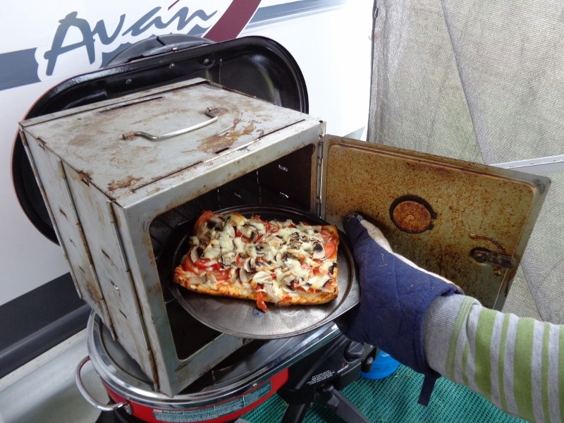 The collapsible oven weighs very little & costs around $65, we've been using one since the1980's. Occasionally we get other campers wandering into our camp enticed by the smell of a full Sunday Roast. They all leave wanting to buy a Coleman oven.