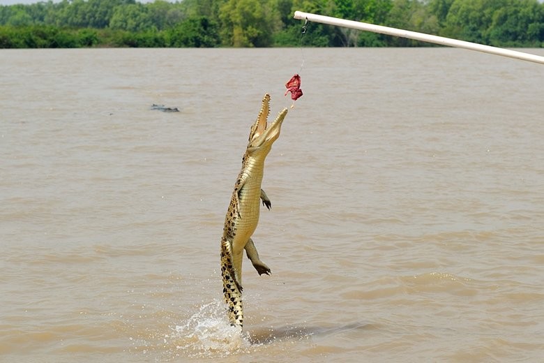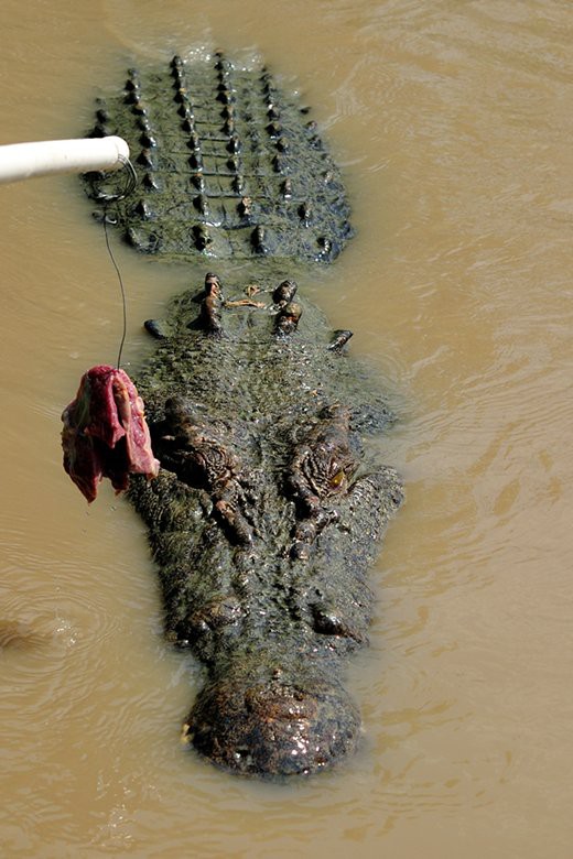 Pauline and I were thrilled to see these great creatures leaping for some meat near Darwin, but on reflection, we total disagree with the practice. Not a good thing to train these killers to seek food around boats!! We're hearing of too many attacks these days. Cheers, Bob