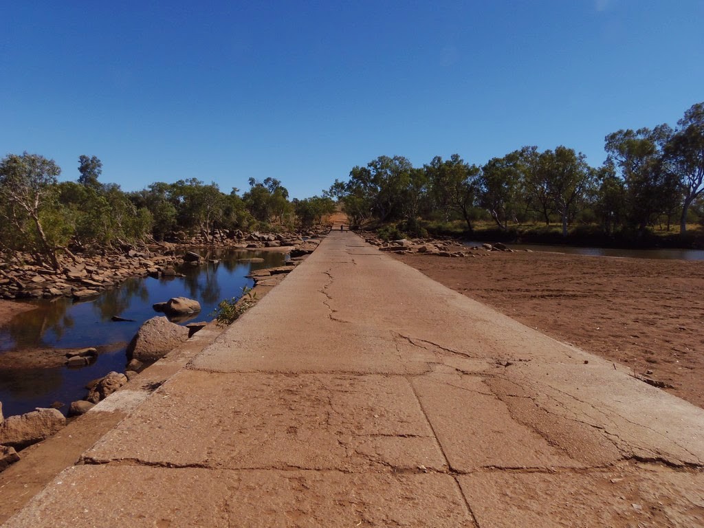 We drove in to have look 4 days ago and commented how bad the causeway surface was. No obvious sign of recent work. We liked the look of Ngumpan Cliff rest area with good facilities including dump point and resident dog.