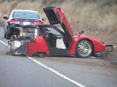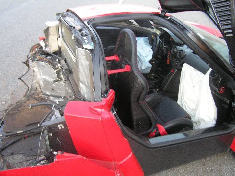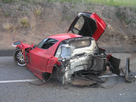 The Ferrari only had 9 miles on the clock.....one mile of it was during the wreck....Hoo Roo