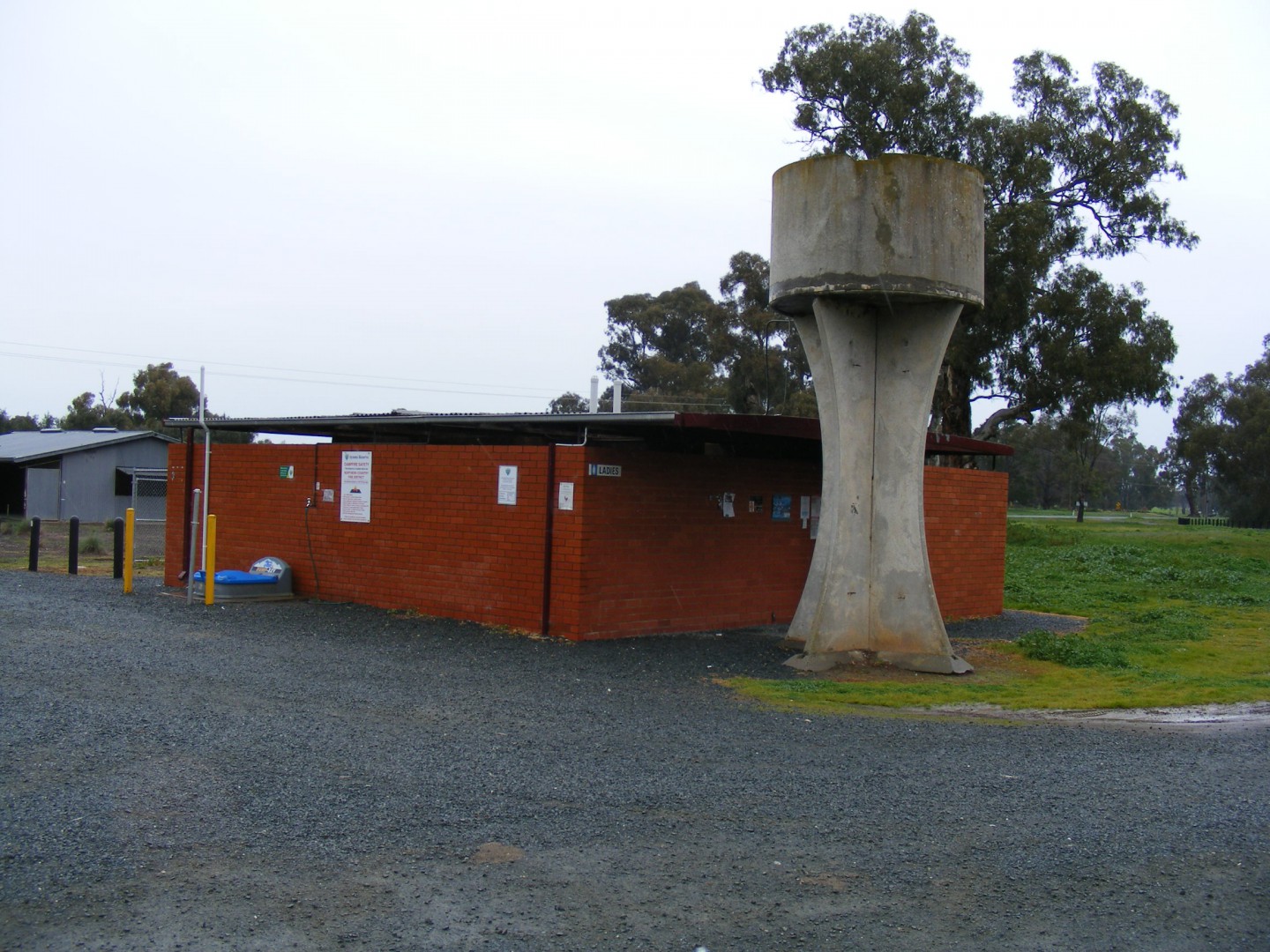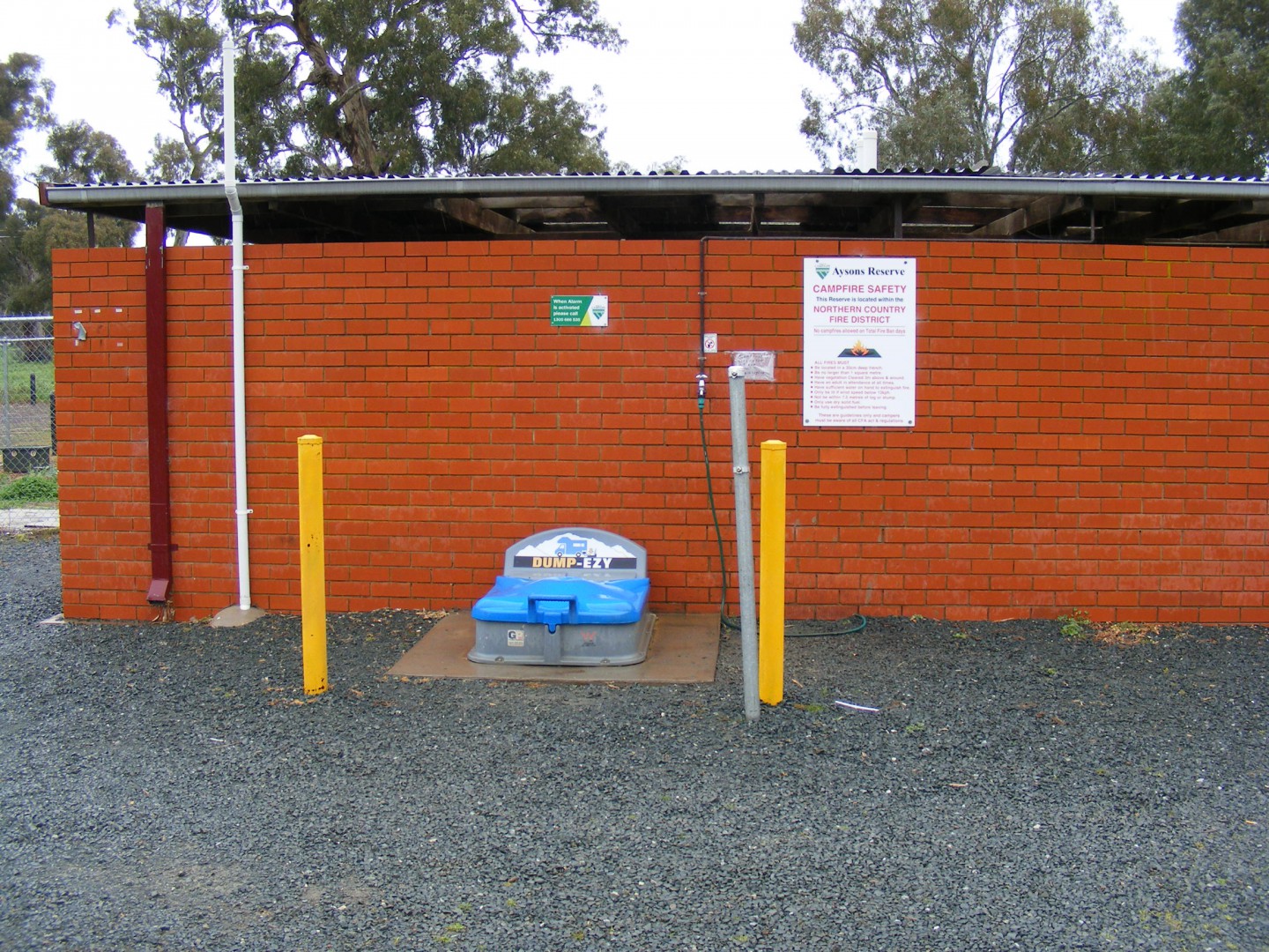 A lovely extensive grassed and FLAT area beside the river. Toilet block and Dump Point.