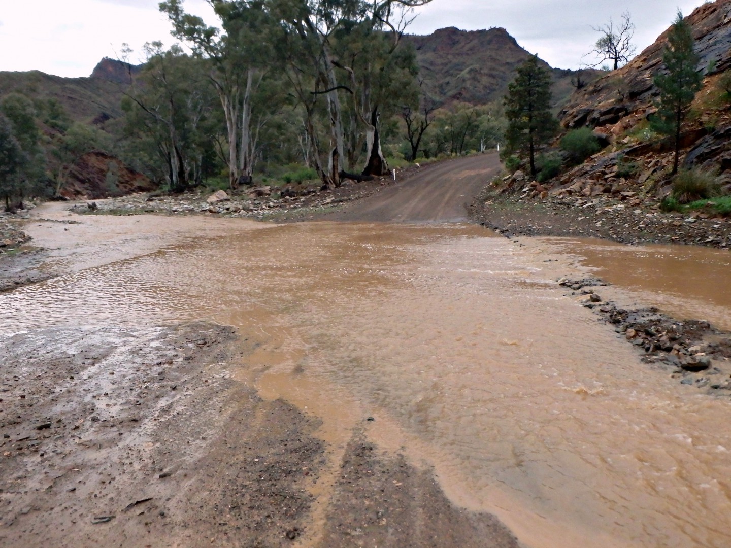 With the recent rains in the Flinders Ranges, Parachilna Gorge have a few water crossings to drive through.