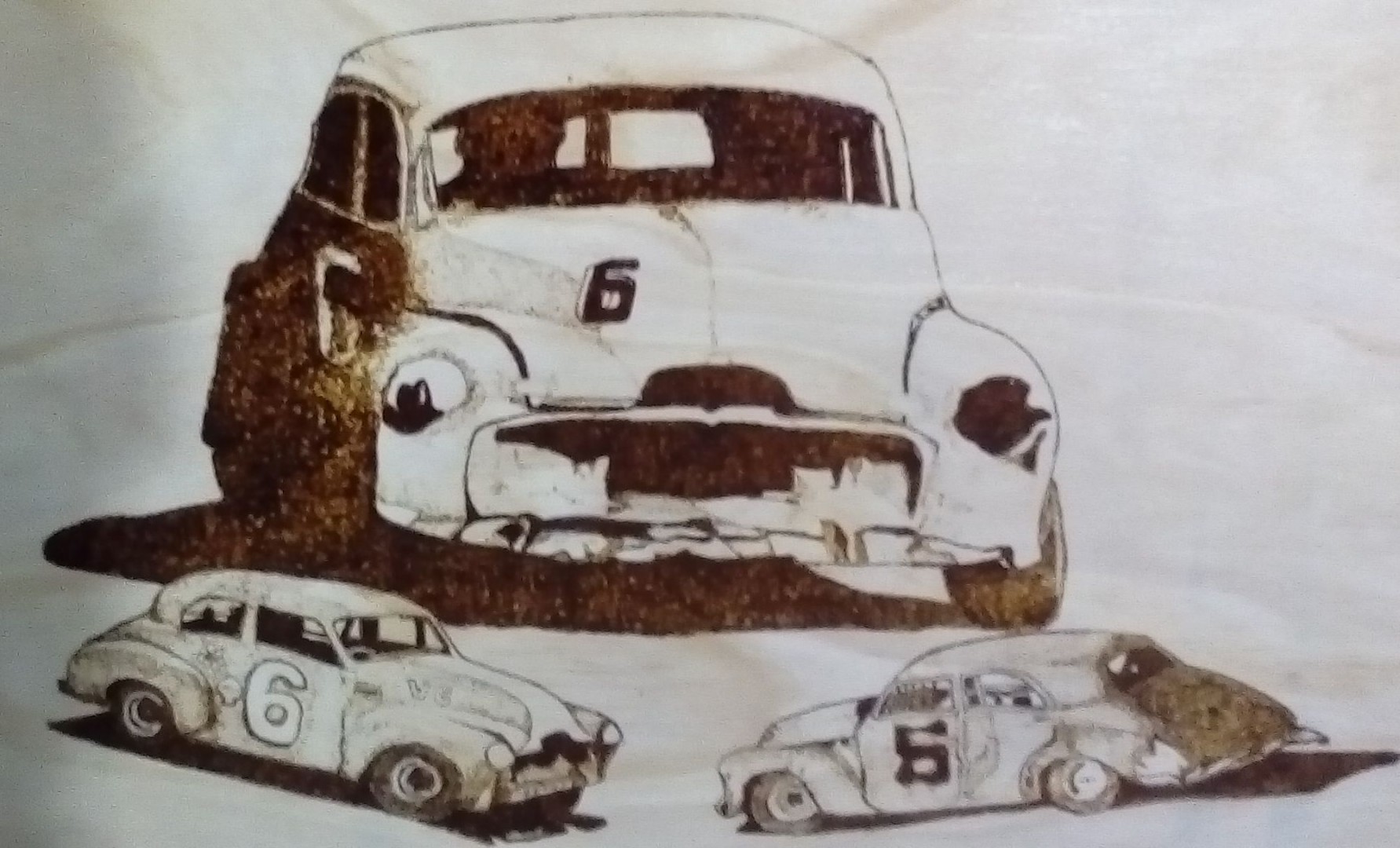 I hope everybody enjoyed fathers day I did, with some of my family and phone calls from the rest out of town. My daughter does wood burning and did a piece of wood with my old FJ Holden from my earlier speedway days. I wish now I still had it in the same condition it was in before I stripped it for racing.