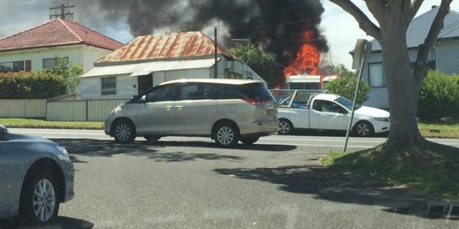 The fire quickly took hold of the motorhome and a shed. It also damaged the rear of the home on Minmi Road at Maryland.