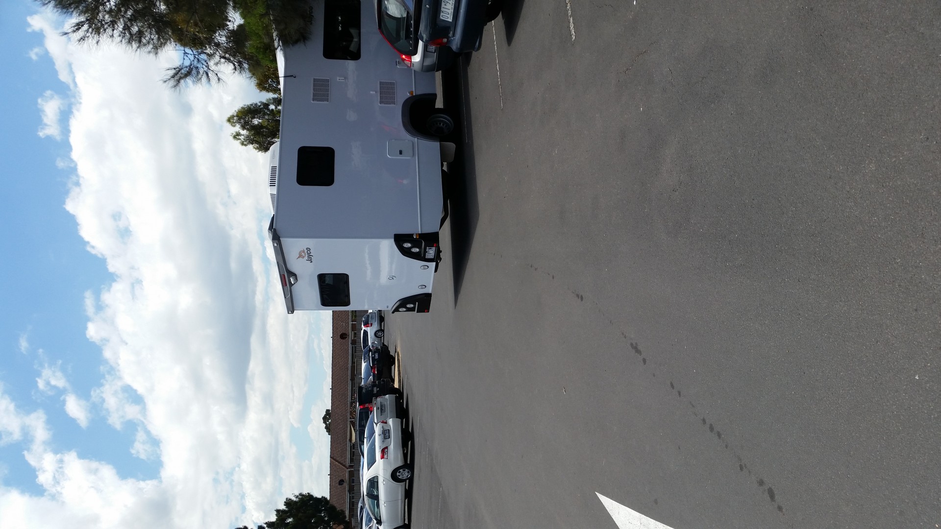 If we go into a carpark like that we actually take up four spots -especially having the little car on the back. Usually try and park along a side road, out of the way, but you would be amazed at the idiots who come along and park directly in front of us, so you have difficulty turning out. There are usually other vacant spots - so why right in front of us!!!??