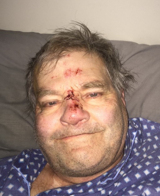 I composed myself and felt liquid running down my face!! I had tripped on the van portable step that I knew was there!! Pushed the bridge of my specs into the bridge of my nose. Stumbled inside for some help from Eril. Gee it did bloody hurt!! I could not believe my luck that I had not broken anything other than my specs