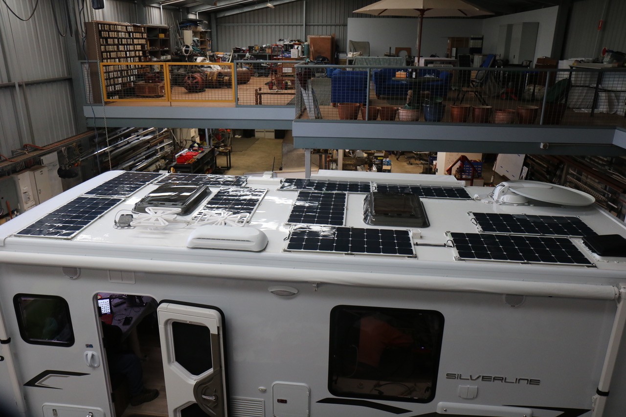 This is how the roof looks now. 10 x 100w panels. You can see where the cables go down through the roof.