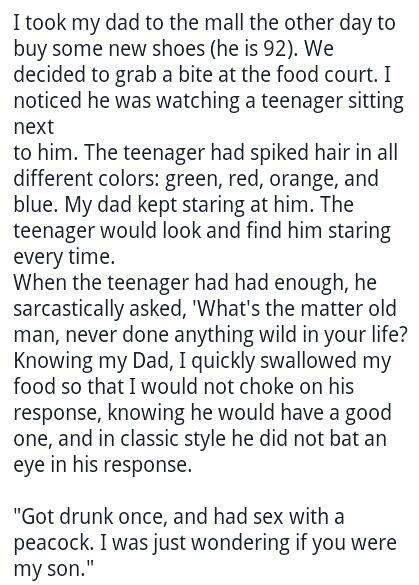 Now Guru, I'm being technical here now. A Pea**** is a male bird!! A Peahen is what grandpa should have been looking for.