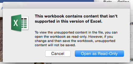 The problem seems to be due to the use of ActiveX. The only way I can open to 'full' file is in read-only. Are you aware of a way to overcome this? I am using the Office 2016 for Mac.