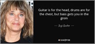Playing her bass guitar between her thighs was Suzies signature act, she became famous for it. Rock on Suzi!