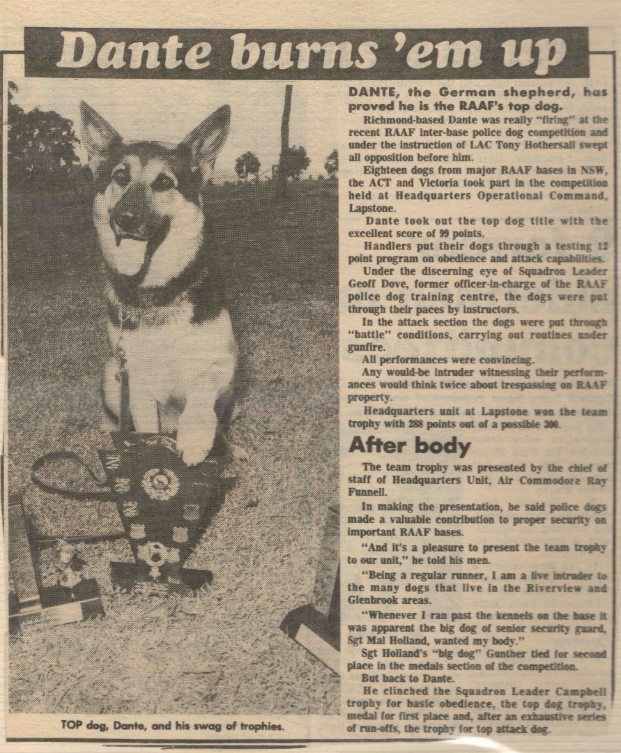 I trained and worked police dogs for most of my working life, including stints as an instructor. During those years I suffered quite a few bites, once being attacked my own police dog, a dog I was to spend another 8 years with. He went on to win a pile of competitions and trophies finally dying in my arms when aged 10.