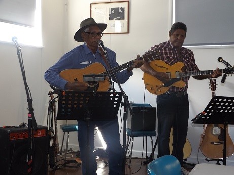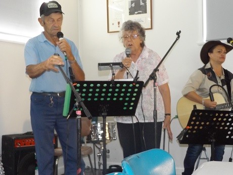 Below L to R, Sam Lovell and Ginger Cox Both appeared at the Nambung festival in West Australia last October Ginger came to Tamworth to be inducted into the Hands of Fame Wife asked Ginger how he got his nickname, he showed her a picture of when he was young, he had ginger hair Sam 84 years young has blue eyes. He can trace his English side of his family back further than mine