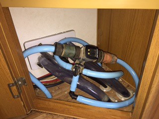 I have arranged the tank selector to be in the cupboard where all the filling and air hoses sit. Also included a flow meter to count the liters used. It looks a bit of a mess but need to be sure the proof of concept works.