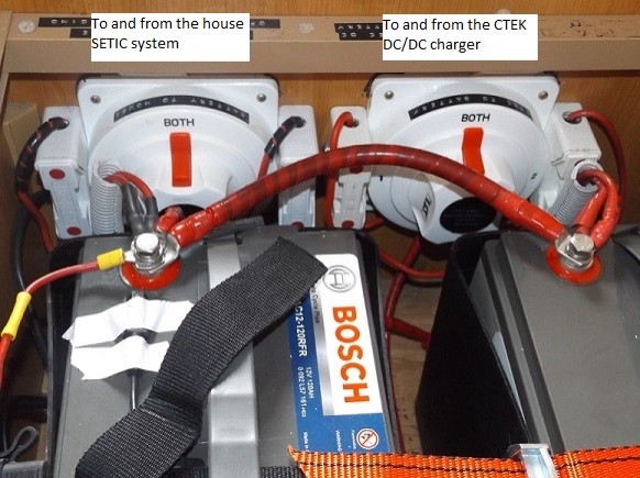 I now have 2 x 120 AH AGM batteries, and have no need for the switches, but have left them in place, as somewhere down the track, I may want to fit a lithium battery