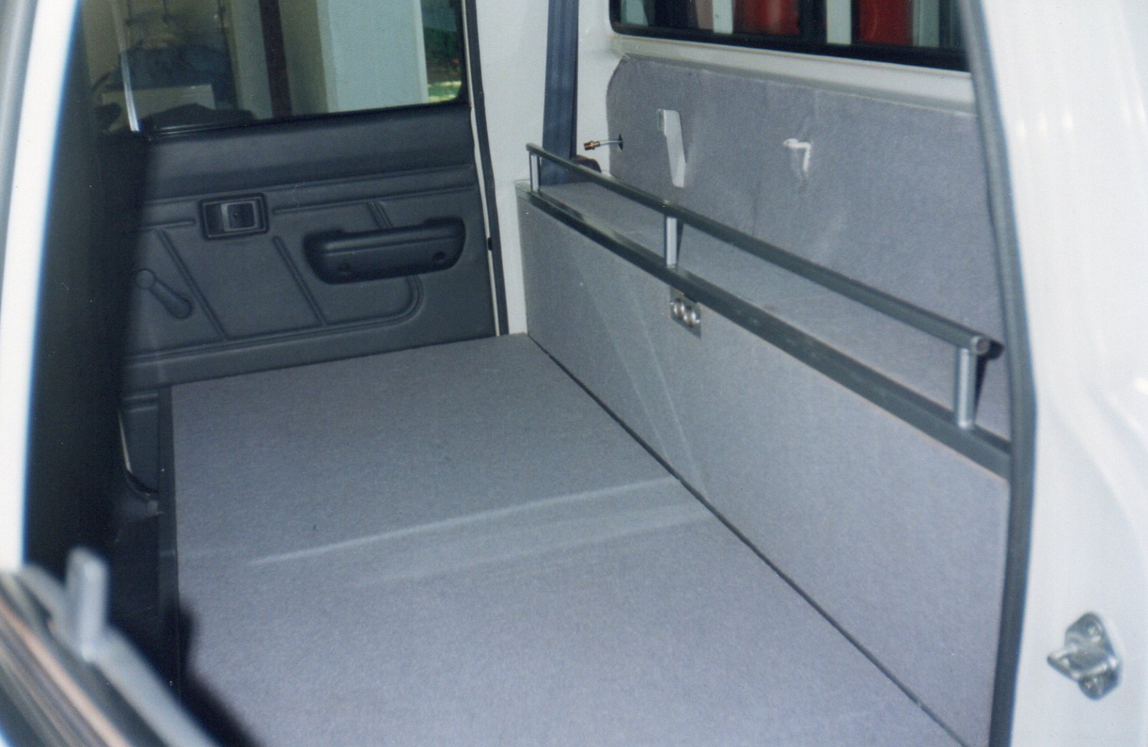 No LEDs back then so fluros were the next best thing. We also had a small TV and that was it for our electrical, aside from wiring in a couple of cigarette lighter sockets. I bought 6 plastic tubs with lids and screwed a hook into the end of a broom handle to fish out the tubs with. I also fitted a 60 litre water tank and fitted a retic tap. For the Ute I bought 3 x 20 litre jerries for water and made up a push, pull caravan tap arrangement to fit the cap. I bought another 2 jeries for fuel and bought a ball pump for them.
