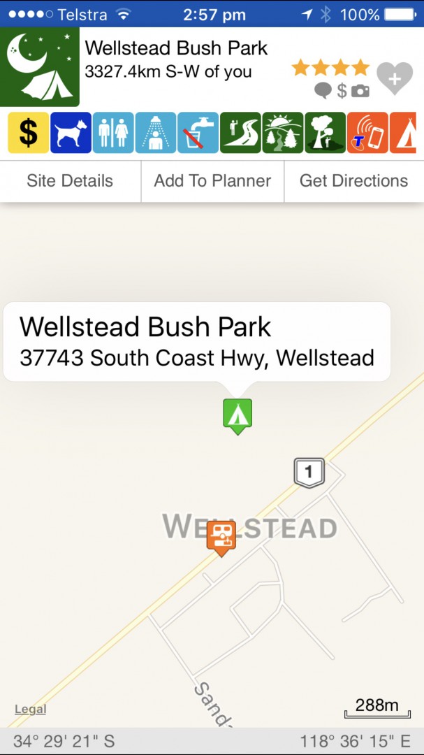 Hi all, just stopped at a low cost camp site about 90kms east of Albany on the southcoast highway at Wellstead, "Bush Park" has been set up by a local farmer, $10.00 per night for 2 people, an ensuite with shower and toilet, laid out sites and power available. Wellstead accross the road has a dump point, tap for potable water, a new toilet block also a hot shower, a new community centre, supermarket and fuel, is peaceful at night, great to see a farmer doing this,