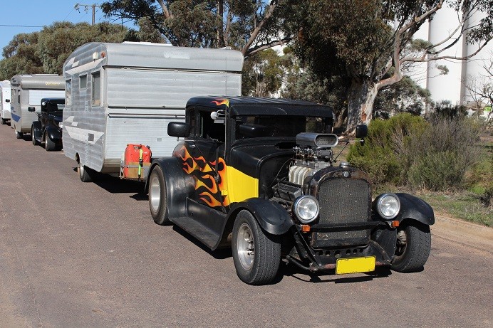 There are quite a few blokes restoring old vans to go with their restored cars. This one parked across from me at Echuca. The Overland has a small block Chev V8. The van is an Olympic fibreglass one with a very nice paint job on it.