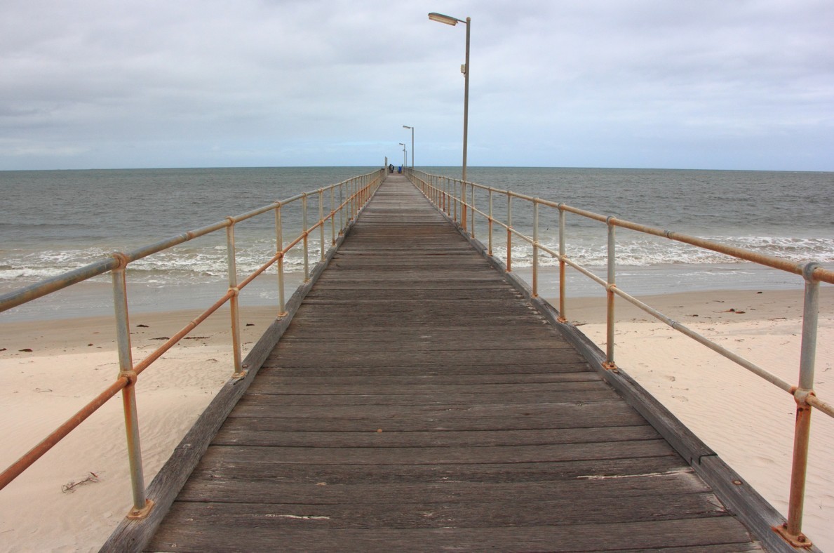 Our only other stop before Whyalla was for a quick look at Arno Bay. Less protected from the elements than Tumby Bay, the chilly springtime weather had us taking a quick trot along the jetty, a chat with a hardy old fisher with chilled blue hands, and retreating back to shore-side shelter.