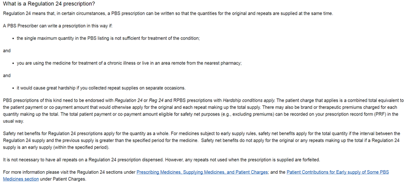 My wife has chronic lower back pain and was prescribed drugs that are on the schedule 8.PBS list.As we will be in areas that a chemist might not be handy.Our Doctor is in the process of getting the drugs,using Section 24 regulation.Hoping all goes well.