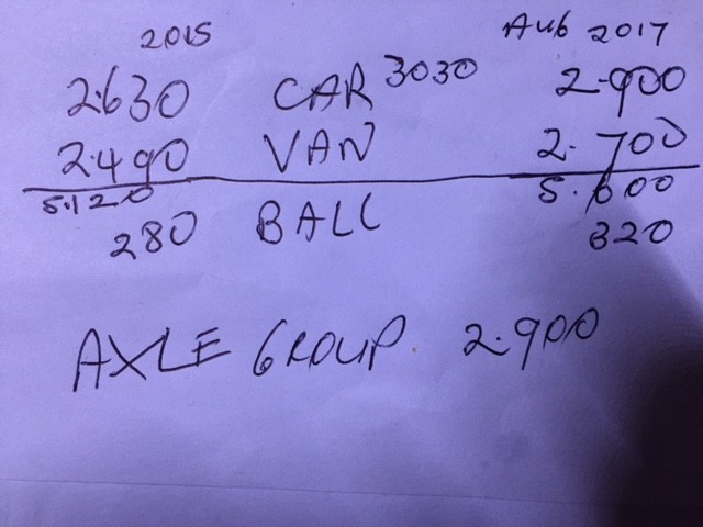 Van & tug were coupled for the tug and van weights. Uncoupled for the ball weight.