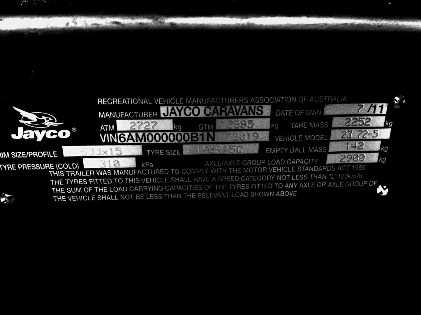Your maximum ATM is 2727kg, but actual weight is 3020 kg (2700 when hitched, plus the ball weight), your maximum GTM is 2585kg, but the actual weight on the wheels is 2700kg, and the max ball is 180 but is actually 320 kg.