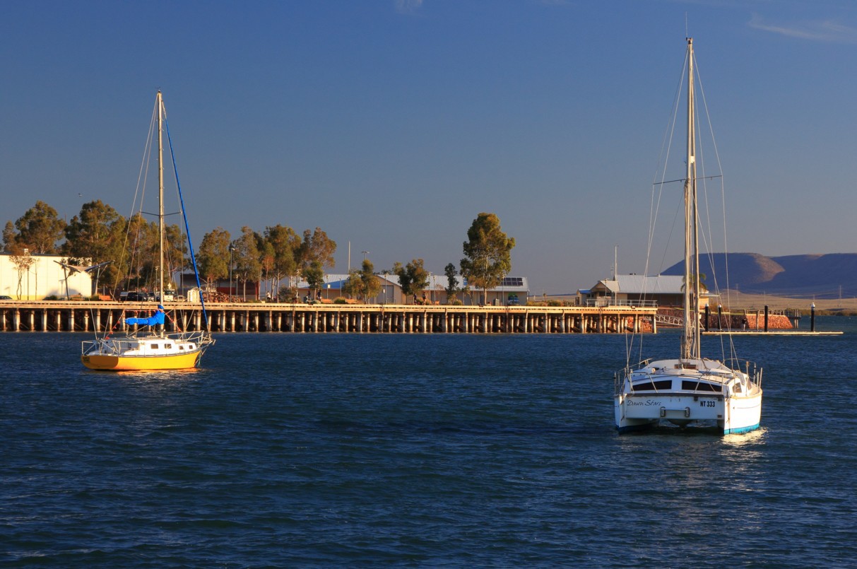 It seems incongruous to see yachts and launches moored or lying on the flats at low tide, and dry country mesas and hills a quick drive away, but that's how it is in Port Augusta. The town's wharf is opposite.