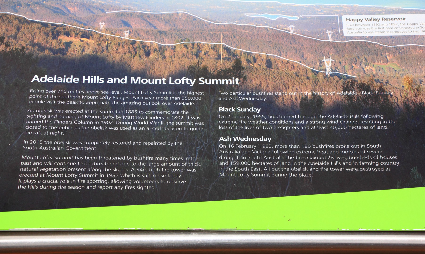 The view from the 710 metre summit is breathtaking. There's a restaurant and function centre up there as well, to add to the appeal. The views over the farmlands on the way up are not too shabby either.