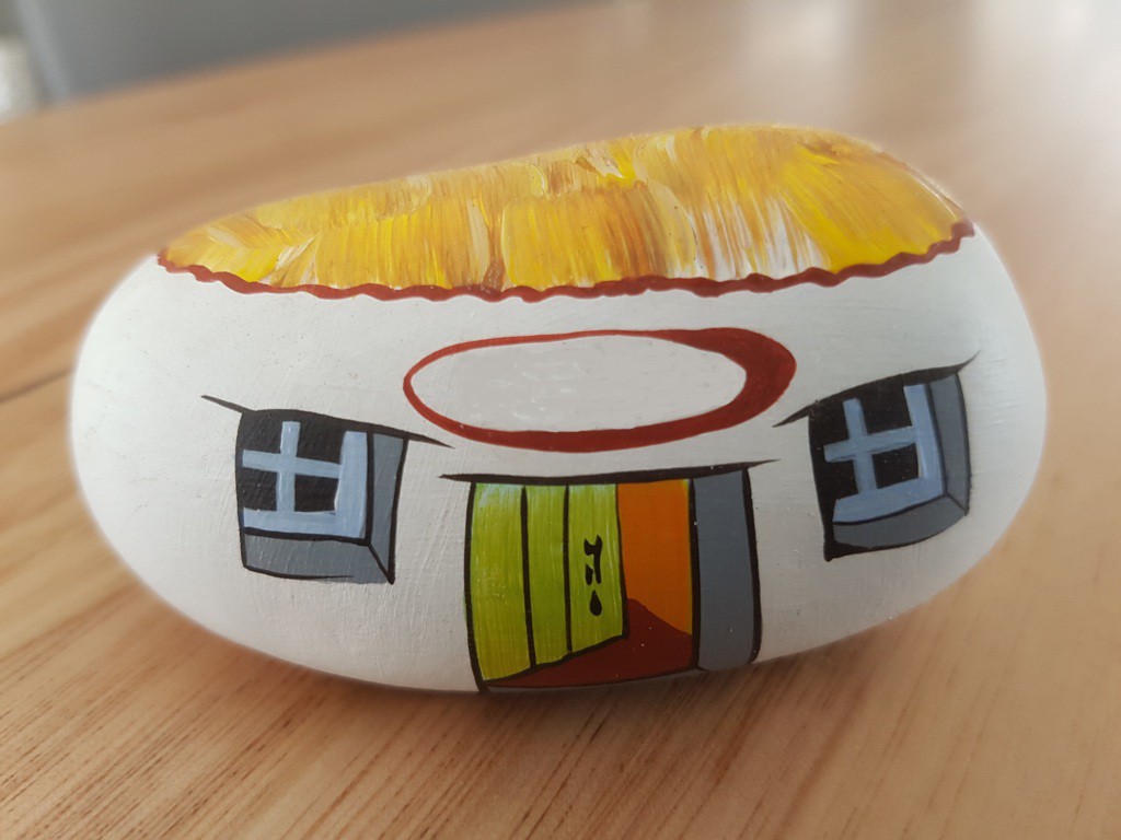 But here's a painted rock I purchased as a souvenir of Skye (Scotland). Simple or fancy depending on the size of the rock. With a family name above the door it could turn into a money spinner.