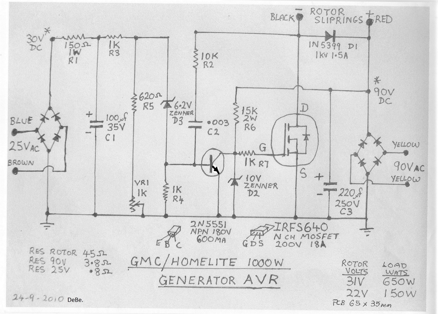 Have marked the AVR, these are on Ebay quite cheep. But the first thing you need to do is remove the Positive & Neg push on terminals on the brush holder. Then using some leads flash 12V DC on the brush holder (observing the polarity) Then reconnect terminals & it will probably work. If not get back.