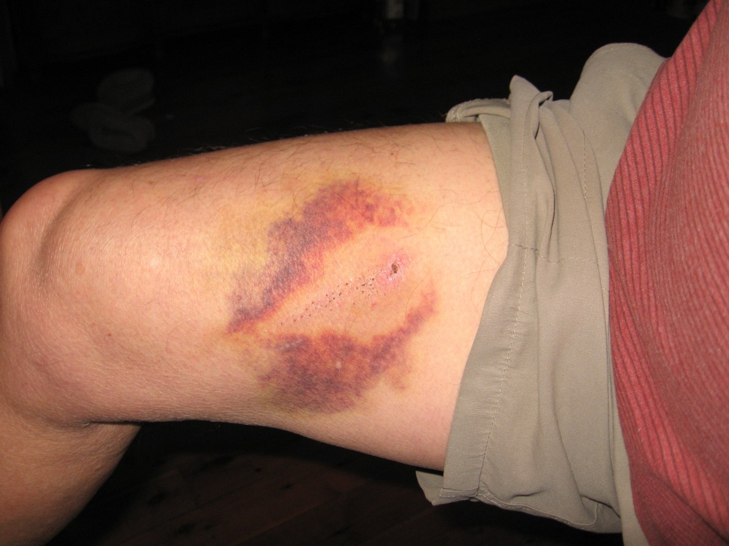I was unhitching the caravan and not concentrating on what the instructions said "SPREAD YOUR LEGS" SWMBO was calling out and bang felt a great pain on my right thigh.