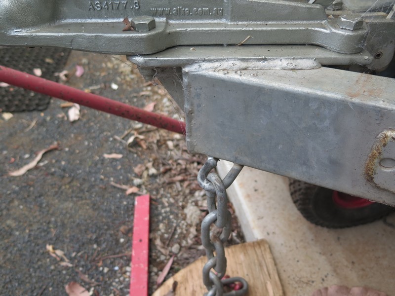 It seems that i may have confused a few members about the safety chains. Were the chains are attached to the draw bar the welded part of the chains may not come in contact with the ground if there is a disconnection of the caravan from the tug while towing. With mine it seems that maybe the small 1" square tubing that is welded to stop this sort of problem, may not be enough.