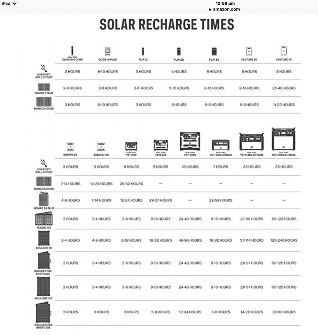 Quite bit of technicality to electricity. Goal Zero is aimed at adventurers: From ultra-lightweight backpackers to 4WD guys who take their portable (but heavy) systems in their vehicle. Yes, they are combos, ready-made to work and not designed to be modified. Although the brand is strong (they are pretty bullet-proof), we pay an excess for lower weight (lipos are lightweight) and small size. Small panels mean long charge times. Its the right balance for adventurers, but maybe not for vans and motorhomes.