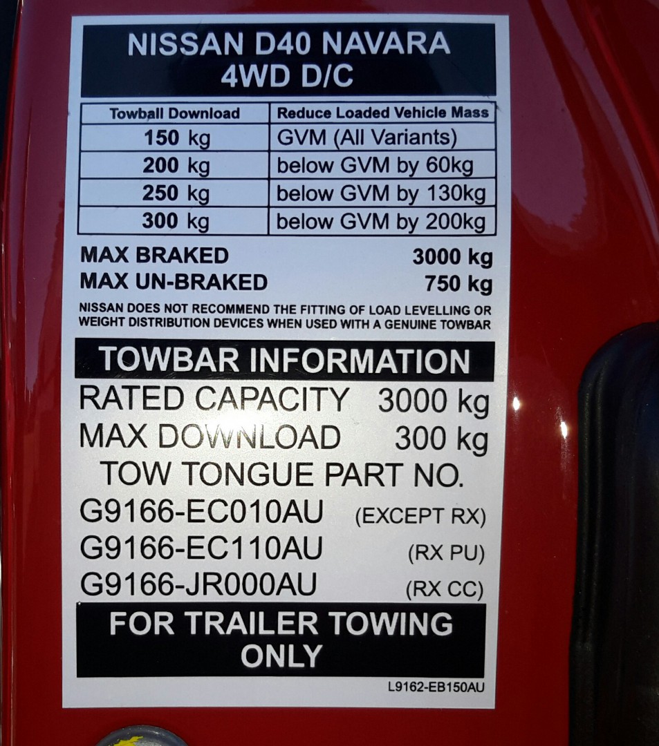 The only figure in my graph I am not 100% sure about is the gross combination mas weight, to me is the important one, that 5510kg could possibly should read 5810kg in all the Nissan paper work, reading webb sites, sales brochures its not mention. That gives me heaps, maybe I might take me bike with me, the expresso coffee machine, buy a kayak.