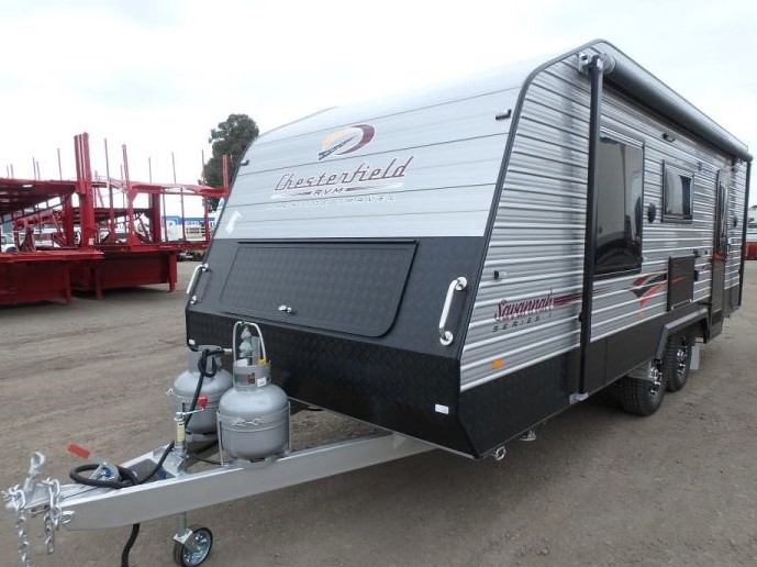 bWell you may ask - what is a Chesterfield Savanah. They do say a picture is worth a thousand words, so have attached a couple for those interested, hope they are attached. This particular van was made by a small company in Melbourne who are trying to break into the market. Whilst I don't know the reasons why - it ended up at a major auction company from the caravan retailer in Melbourne. Yes folks, I bought a new caravan at auction. Sight unseen (except for pics on the auction company website and verbal confirmation of the tare weight & that's all). I had been looking at all available websites for the last 4-5 years, trying to learn as much as possible about caravans. Nearly signed up for a van at a caravan show, but realised I just could not afford it. So kept looking at all the sites including evilbay. I found a good 2 year old van at this auction site and was bidding on it, but it finally went too high. So that was that, or so I thought, found a brand new 21'-6" van on the same auction site and liked it. Done as much research as I could, even got hold of a company that did the sub-contract electrical & plumbing on the van & was talking to the foreman as I was trying to find out if it had a 12 or 7 pin plug and/or Andersen plug so I could get my vehicle wired up. He told me that they were very well made - so that convinced me even further. So I bid on the van online - but it didn't meet the reserve price the retailer was insisting. So next day the auction company contacted me & negotiations took place. Once I knew the reserve price the retailer was insisting on (he wouldn't budge) I declined the price as I cold not afford the approx $4,500 extra I would of paid the auction company for auctioning the van (pretty steep I thought). So 30 minutes later the auction bloke rings me up again & said all I needed to pay was a $1,000 on top of the reserve price. SOLD!