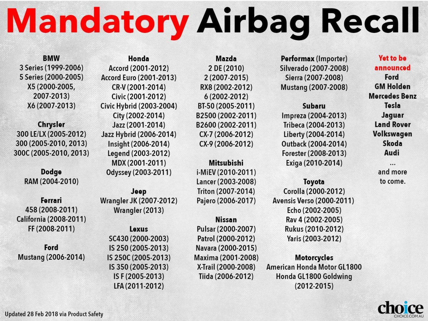 www.9news.com.au/national/2018/02/28/11/10/takata-airbag-recall-australia-affects-cars-list